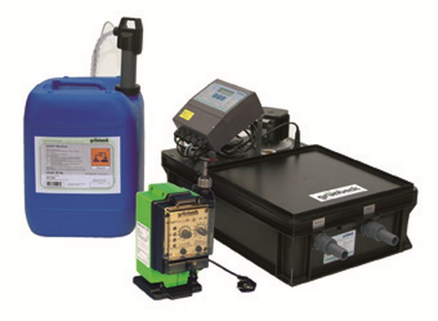 Die pH-Wert geregelte Neutralisationsan-lage GENO-Neutra FNH-420-R dient zurNeutralisation (pH-Wert-Anhebung über6,5)von Kondenswasser aus gas- undölbefeuertenWärmeerzeugern (Brennwertkessel)und/oderAbgassystemen aus Aluminium, Edelstahl,Kunststoff, Graphit, Glas und KeramikgemäßDen Arbeitsblatt ATV-DVWK-A 251 undDVGW-Prüfgrundlagen.Anlagenausführung:1 Neutralisationsanlage GENO-NeutraFNH-420-R als Kompaktanlagebestehend aus:1 Neutralisationsbehälter zur Bodenaufstellung1 Kondensat Zulauf-Filtereinrichtung3,5 Liter Aktivkohle-Füllung1 Umwälzpumpe mit integriertem Dosierventil1 VerteilerstreckeTechnikkonsole mit1 pH-Elektrode1 Füllstandsonde mit 4 Schaltpegel1 Förderpumpe mit Rückschlagventil1 GENO-Neutra-matic zur Steuerung derNeutralisationsanlage mit2-Zeilen-Display zur Anzeige und Einstellung der Betriebsparameter pH-Wert,pH-min Alarm, pH-max Alarm, Kesselab-schaltung mit pot. freiem Störmelde-ausgang.Auflagedeckel1 GENODOS-Dosierpumpe mit Konsole zurWand-oder Bodenmontage1 Anschlussset zur Dosierpumpe2 Schlauchtüllen 25 mm mitÜberwurmutter 1"1 Verschlusskappe 1"3,5 m Dosierschlauch1 Sauglanze mit integrierterLeermeldungu. Vorwarnung1 Kalibrierlösung pH 71 Kalibrierlösung pH 46 m Ablaufschlauch di=12mm3 m Schlauch gewebeverstärkt di=25mmkpl. im Karton verpacktTechnische Daten:Max. Neutralisationsleistung: 420 L/hAnschluss Zulauf : 25 DNÜberlauf : 25 DNAblauf : 12 DNHöhe Zulauf-/Überlauf : 105 mmMax. Förderhöhe : 3 mRückstauhöhe : 115 mmmax. Kondensat-temperatur : 40Grad Ckurzzeitig : 50Grad CNetzanschluss : 230V,50HzSchutzart : IP 54Abmessung L/B/H (mm) :600/400/365Fabrikat : Grünbeck - 5