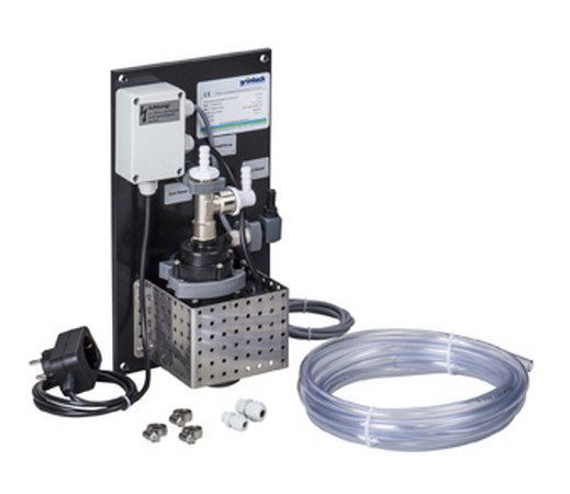 zum Abpumpen von anfallendem Regenera-tionswasser bei Kanalhöhen bis 2,5 mtrüber Wasseraustritt des WINNI-mat VGXoder Weichwassermeister 2 Typ GSX ausdem Steuerventil.Selbst bei Stromausfall ist die Ab-leitung von Regenerierabwasser gewähr-leistet!Salzwasserbeständige, lecksichere, dich-tungslose magnetangetriebene Inlinepumpeincl. Rückflussverhinderer geräuschent-koppelt auf Wandplatte montiert.Inclusive Dübel und Befestigungs-schrauben zur WandmontageDer Einsatz einer Regenierabwasserhebe-anlage schliesst die Erfordernis einerWasserstoppeinrichtung bei fehlendemBodenablauf nicht aus! - 5