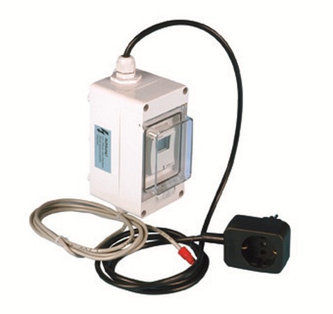 bestehend aus:1 Kunststoffgehäuse mit Klarsichtdeckelals WandkastenSchutzart IP 551 Elektronik-Zeitschaltuhrmit Digitalanzeige von Zeit undWochentag und Handtaster zur manuellenVeränderung des Schaltzustandes sowieWahlschalter für Sommer- bzw. Winter-zeit1 Stromanschlusskabel mit SteckerLänge: 1,5 mStromversorgung: 220 - 240 V - 5