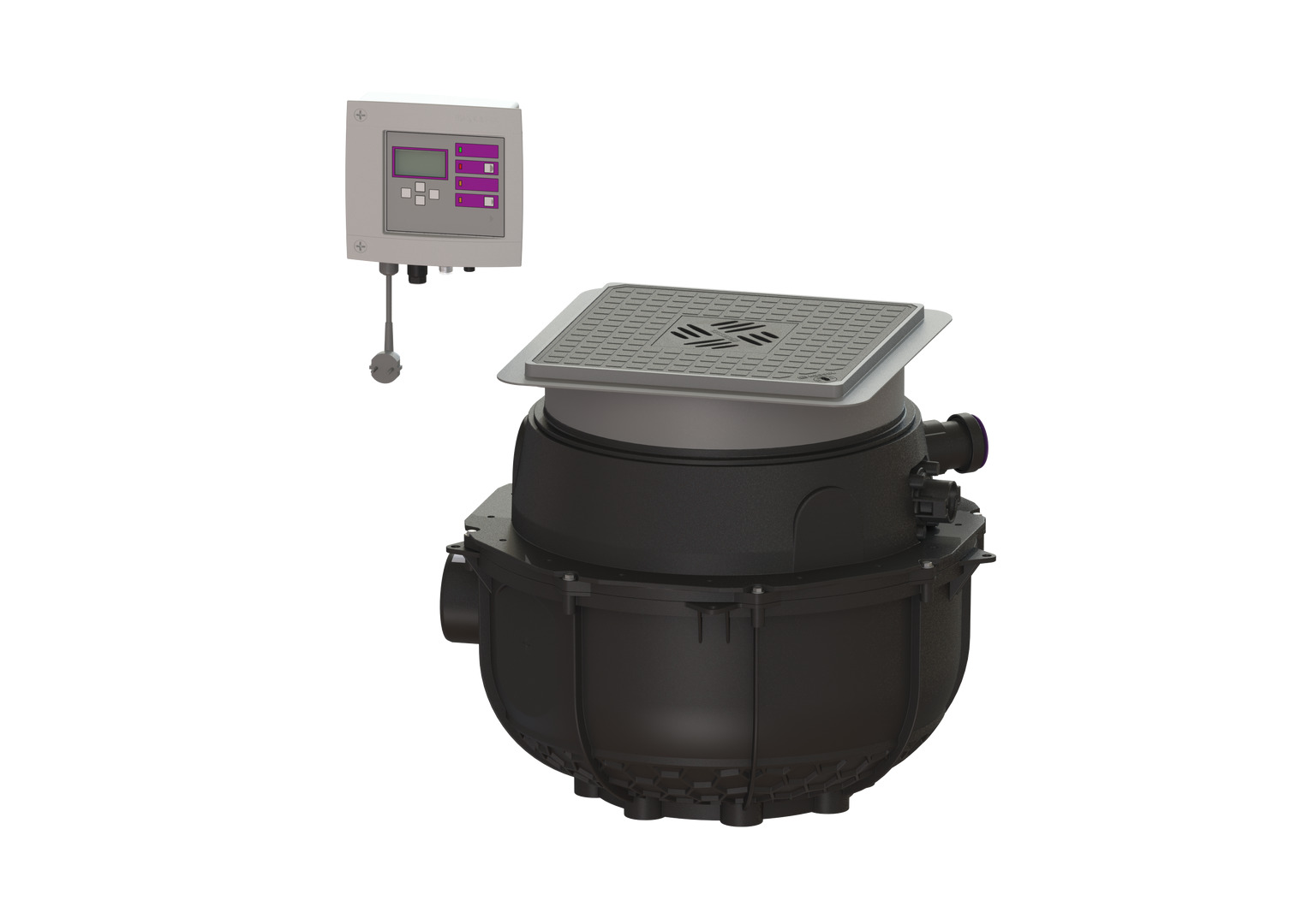 Die Hebeanlage für fäkalienfreies Abwasser ist mit einer oder zwei überflutbaren Pumpen sowie integriertem Rückflussverhinderer ausgestattet. Der Sammelbehälter aus dauerhaft beständigem Kunststoff (PE) besitzt einen offenen Pumpenraum. Einhandverschlüsse ermöglichen die einfache Entnahme der integrierten Komponenten. Die Anlage zum Einbau in die Bodenplatte ist vormontiert zur bauseitigen Endmontage.