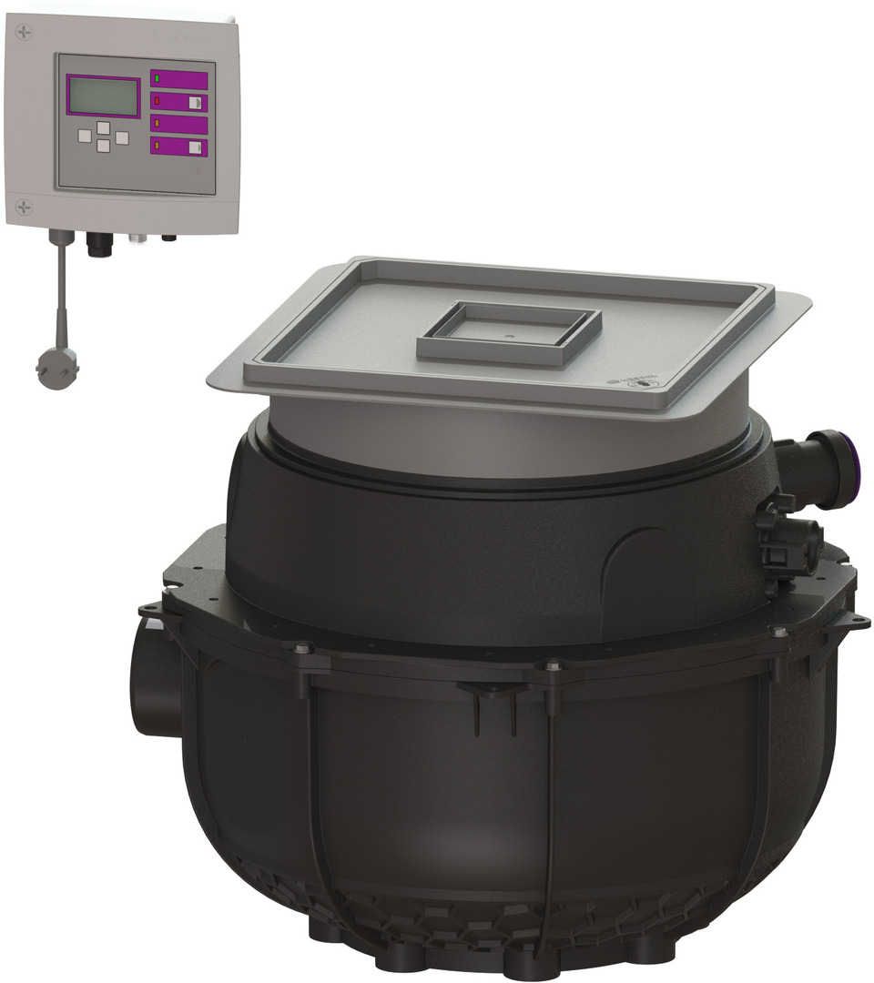 Die Hebeanlage für fäkalienfreies Abwasser ist mit einer oder zwei überflutbaren Pumpen sowie integriertem Rückflussverhinderer ausgestattet. Der Sammelbehälter aus dauerhaft beständigem Kunststoff (PE) besitzt einen offenen Pumpenraum. Einhandverschlüsse ermöglichen die einfache Entnahme der integrierten Komponenten. Die Anlage zum Einbau in die Bodenplatte ist vormontiert zur bauseitigen Endmontage.