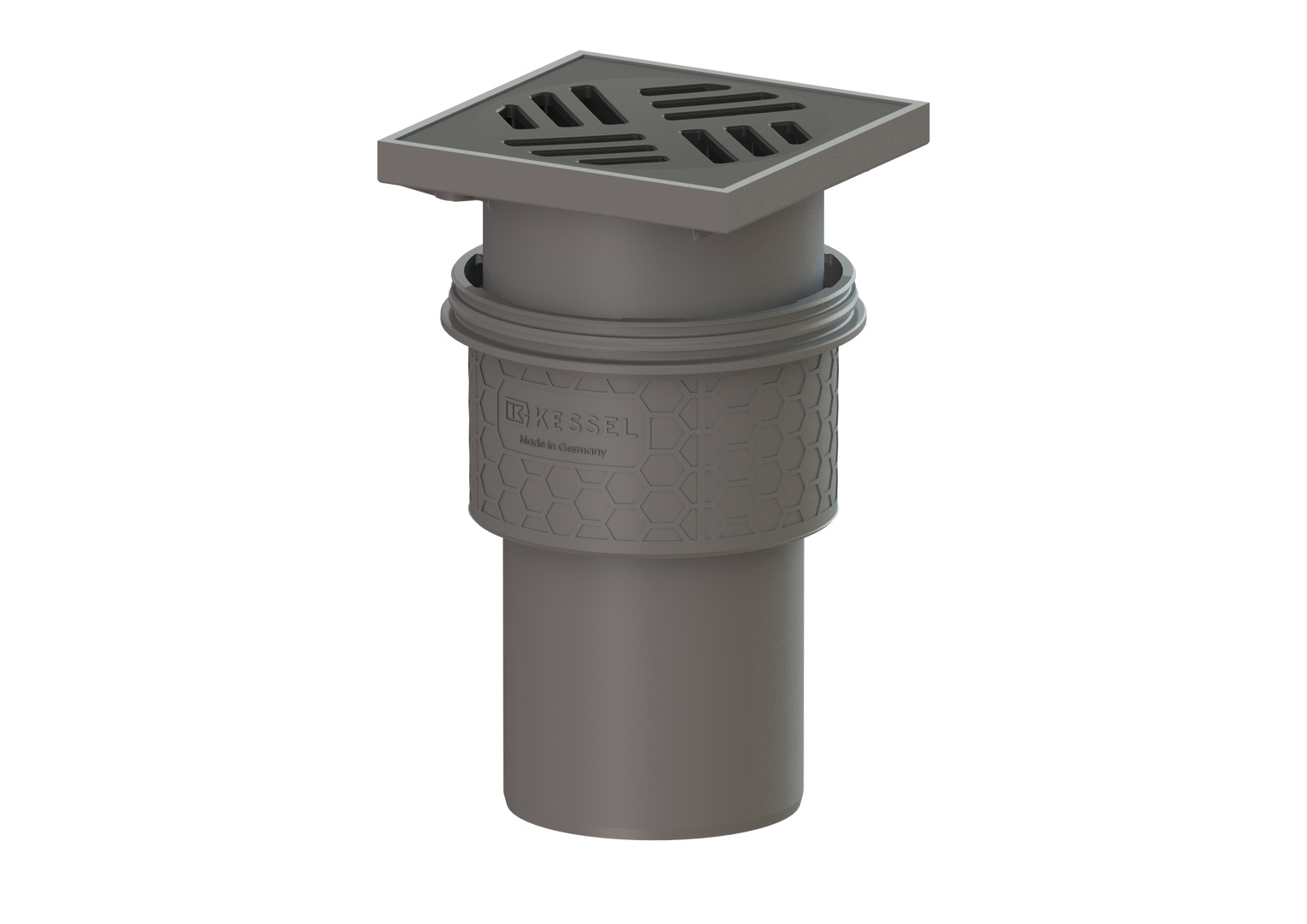 Der Kellerablauf Practicus besteht aus Kunststoff und eignet sich zum Einbau in die Bodenplatte. Das Aufsatzstück mit Schlitzrost ist teleskopisch höhenverstellbar.