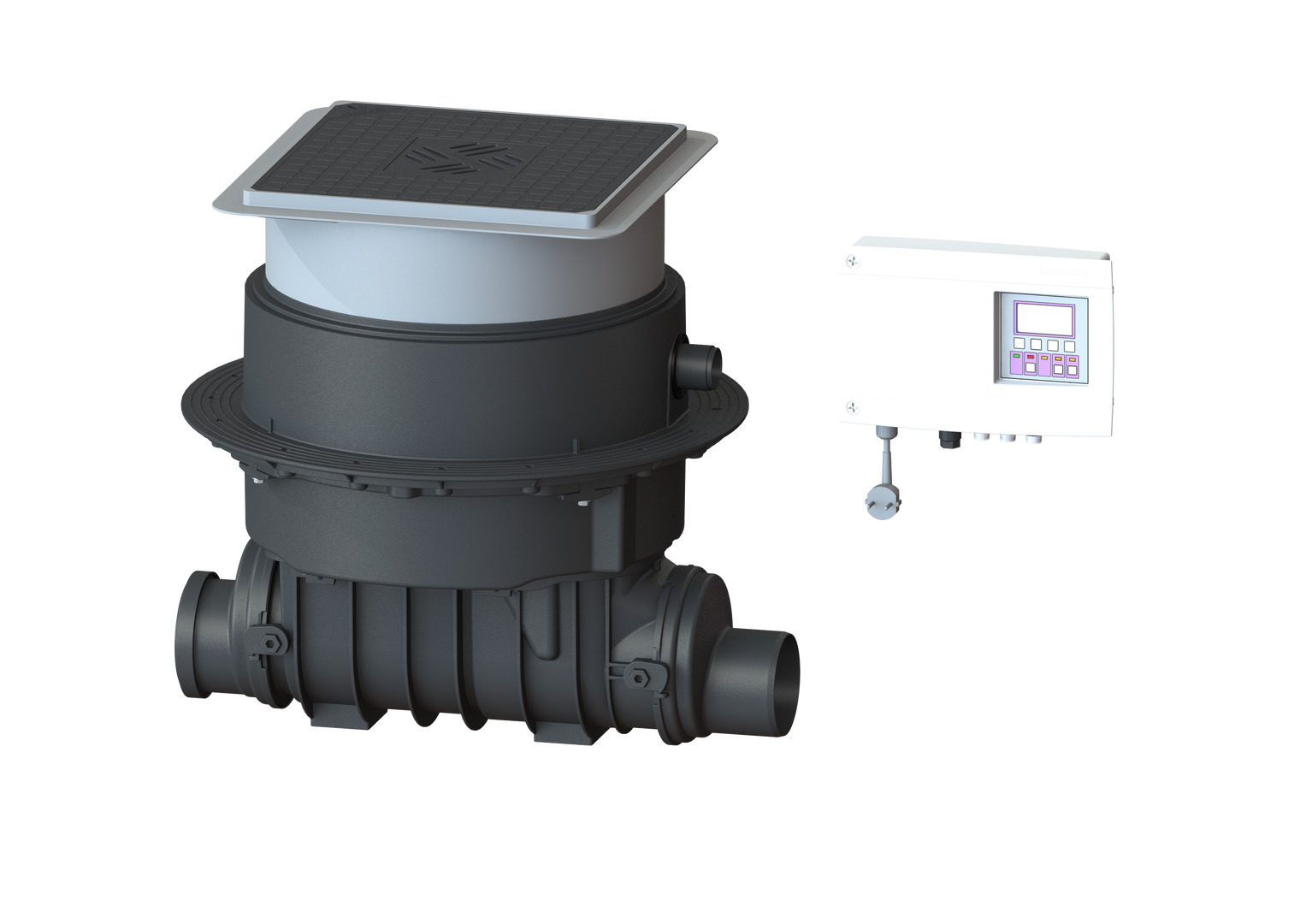 Die Rückstauhebeanlage für fäkalienhaltiges und fäkalienfreies Abwasser ist mit einer Pumpe und einem motorischen Verschlusssystem ausgestattet. Im Normalzustand ist der Rohrquerschnitt frei geöffnet und die Entwässerung erfolgt über das natürliche Gefälle zum Kanal. Rückstau wird durch eine optische Sonde erkannt, wodurch das motorische Verschlusssystem automatisch geschlossen wird. Die Entwässerung während der Rückstauphase erfolgt über eine Druckleitung, die das Abwasser über die Rückstauebene führt und in den Kanal fördert. Anschlussbohrung im Grundkörper für den Erdeinbau, inkl. Dichtung für Druckleitung und Kabelleerrohr. Die Steuerung erfolgt durch ein anwenderfreundliches Schaltgerät, das optional über einen potentialfreien Kontakt in die Gebäudeleittechnik eingebunden werden oder Alarm- und Sammelstörmeldungen über eine GSM-Schnittstelle ausgeben kann.